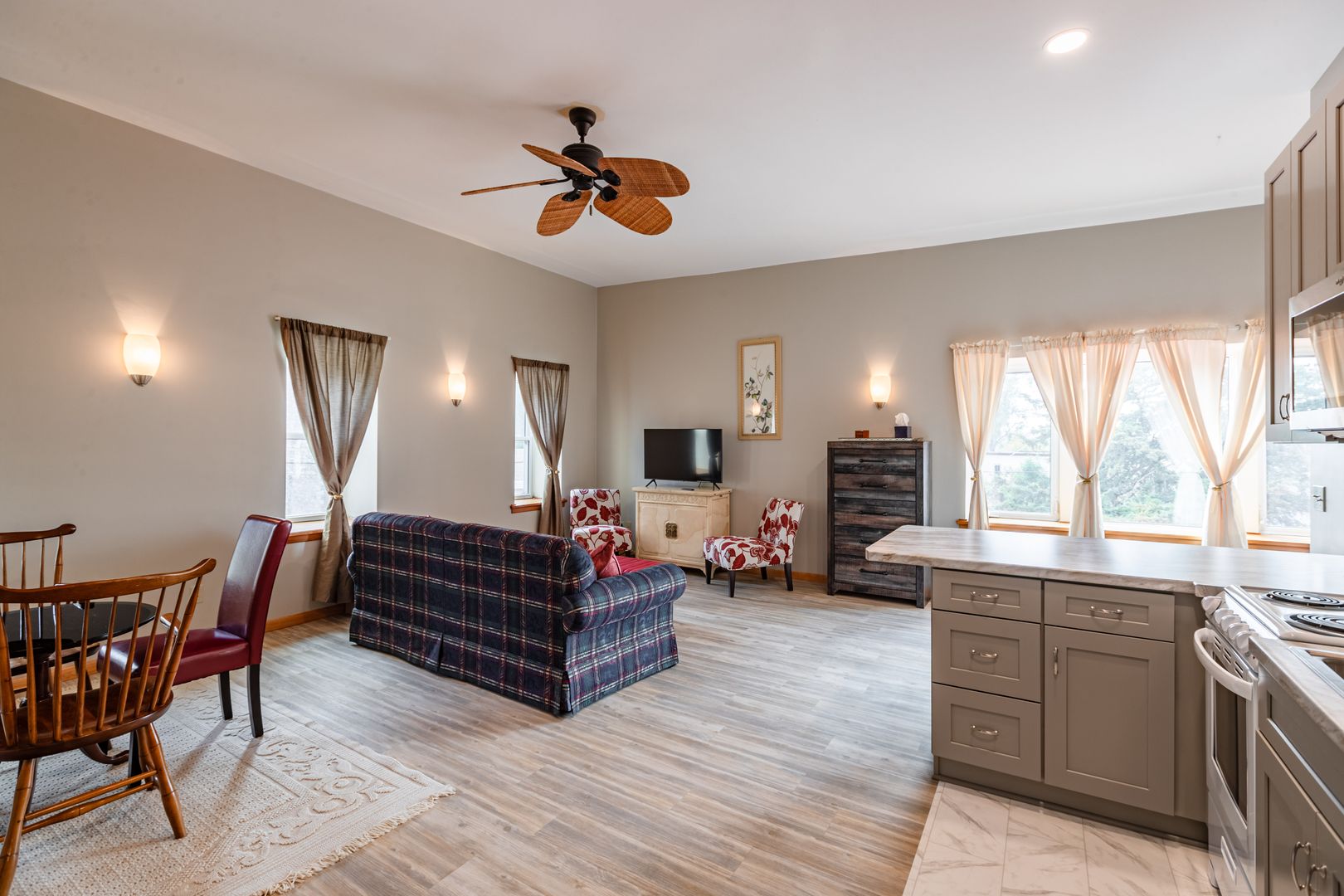 This spacious studio is fully furnished and all utilities are included in rent. Enjoy river town living in scenic De Soto, Wisconsin. Tenants will enjoy a beautiful outdoor courtyard including a fire pit area and off-street parking next to the building.