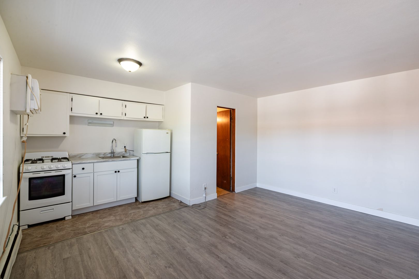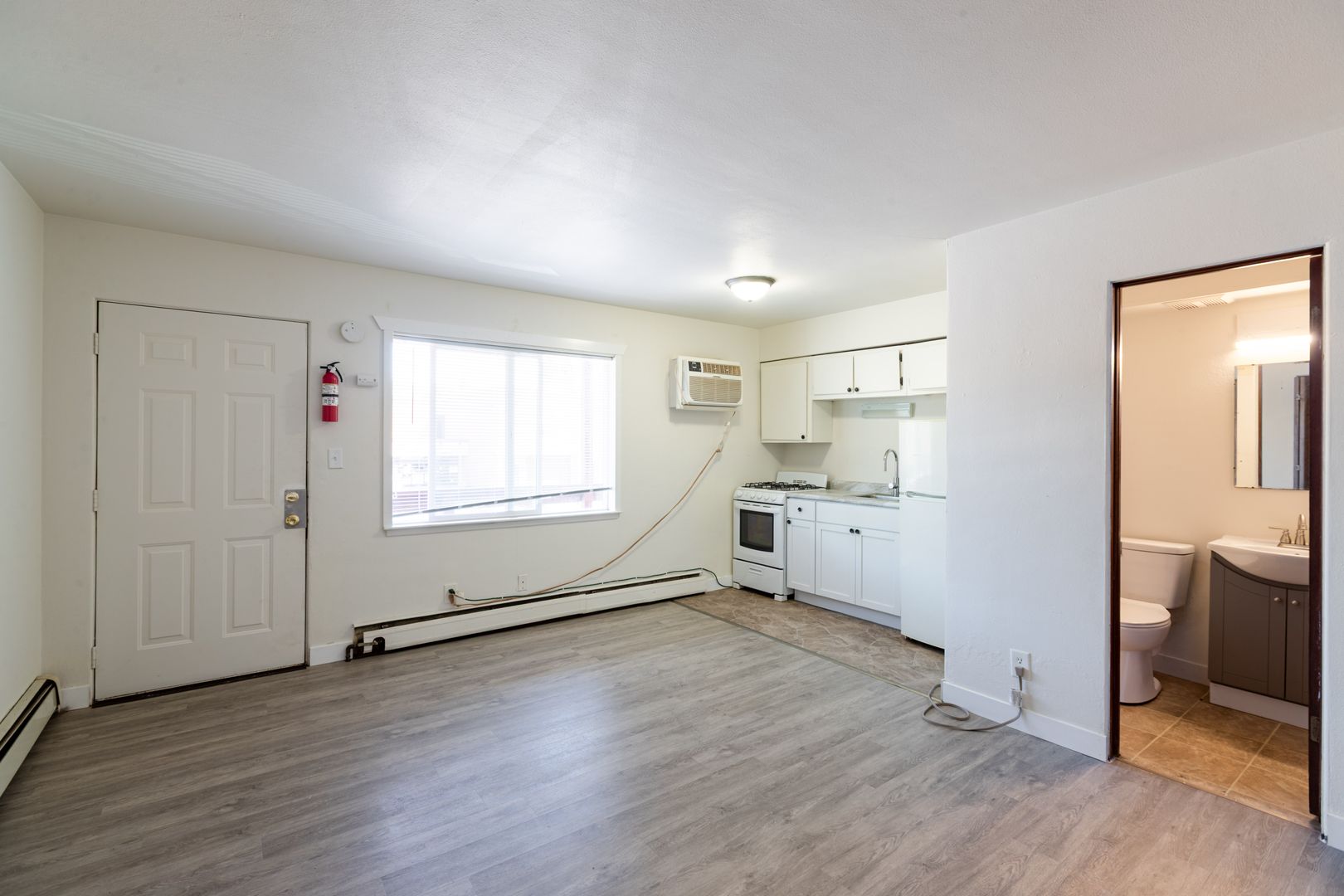 This spacious studio has new vinyl flooring, air-conditioning, new windows and a full kitchen. There is on-site laundry for tenant use. All utilities are included in rent. Cats are considered for an extra $50/mo.